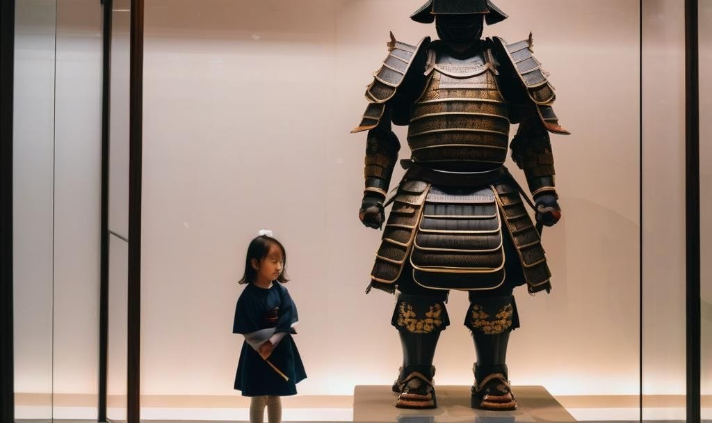 “What am I doing here?” finally her consciousness woke up. Before her front brain, the CEO of her being could use veto to not address the question, she found herself standing right in front of the “Samurai Armor”. Ten feet in height, and a two meter wide, the beast stood smugly, enclosed in a bullet-proof glass case.